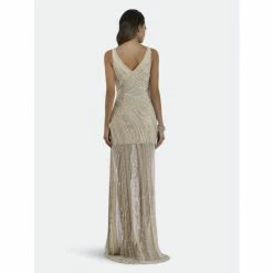 Lara 51048 – Sheer Long Dress With Slit Dresses Nude/ivory