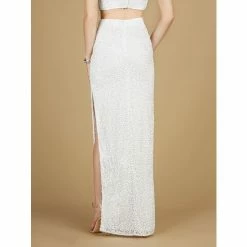 This Lara beaded side-slit beaded skirt is the perfect value addition to your wardrobe. It offers versatility to wear for a fancy night out or can be used as a two-piece with one of the skirts or pant combos to be worn to a fancy gala or your next birthday celebration. Features a back zipper and a thigh high slit.