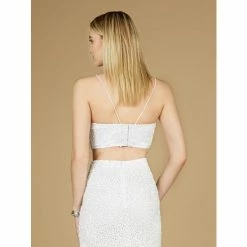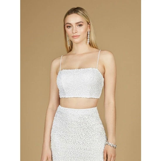 This Lara beaded spaghetti strap beaded top is the perfect value addition to your wardrobe. It offers versatility to wear for a fancy night out or can be used as a two-piece with one of skirts or pant combos to be worn to a fancy gala or your next birthday celebration. Features button closures in the back, has a straight neckline and a fitted bodice with built in cups so no need for a bra!
