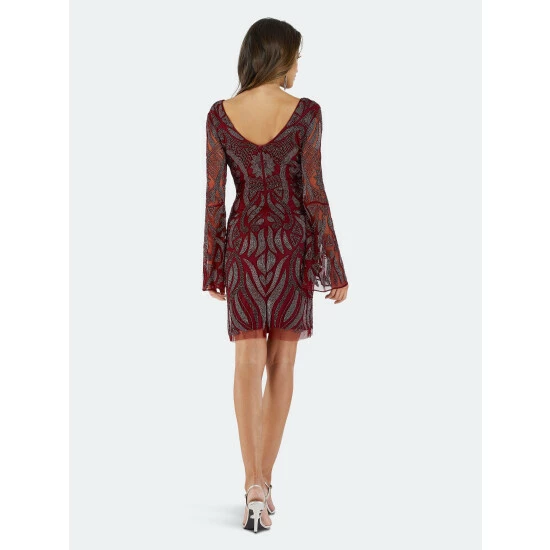 Beautiful, classy long bell sleeve short dress. Fully embellished with seed beads.