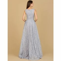 Another updated overskirt style from Lara designed to stand out from the rest. This embroidered applique long gown features a v-neckline and sweeping overskirt with all over beading.