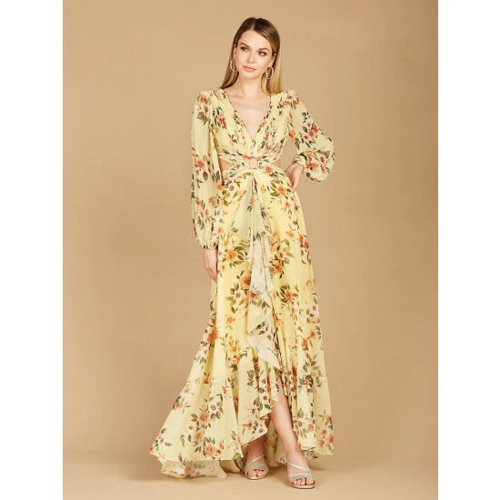This long sleeve v-neck print dress has cut outs on the waist line to really give you a slimming look. This beautiful print with long sleeves features a lace up back. You’ll have everyone’s attention in this unique one of a kind piece.