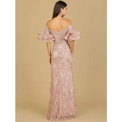 Beautiful mermaid gown with off shoulder sleeves featuring a unique tiered cape sleeve. This versatile style is fitted to show your curves in a flattering way and works for a wide range of ages including a mother of the bride, sister of the bride/groom or even the bride on her reception night.