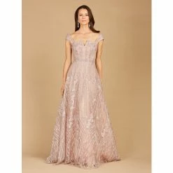 Gorgeous off shoulder, A-line ball gown with a full embroidered and beaded skirt. This is perfect to wear to your bridal party or any formal event.