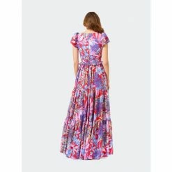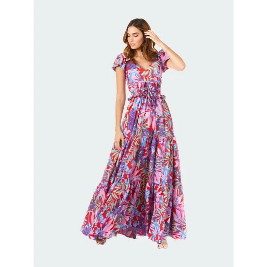 This is an a-line print gown with v-neck straps in a floral pattern with cap sleeves. The flutter details at the waist with bows are for additional support and a unique style. This is one of the favorite print dresses that are coming soon. It is simply perfect for a multitude of events and stunning for the soon to come tropical weather.